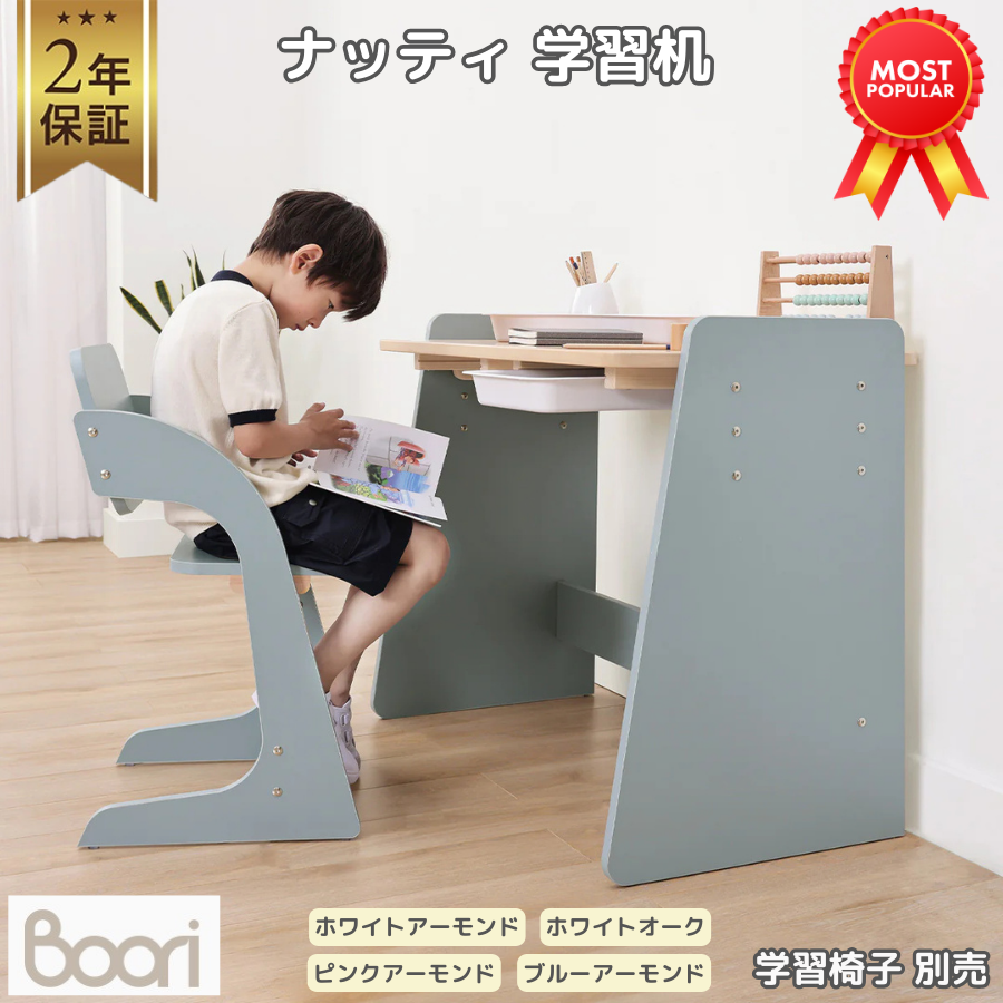 素材 | ホワイトアーモンド / ホワイト:ヨーロッパのブナ材と加工木材の組み合わせ ブルー / ピンク:ブナ材の代わりに人工木材を使用 トレイ:硬質プラスチック |